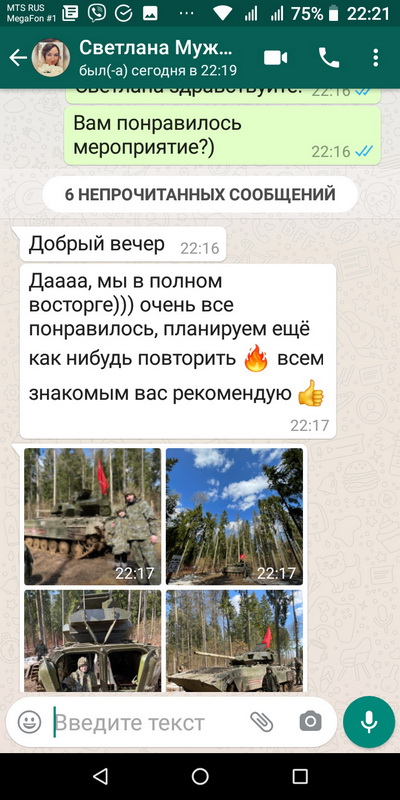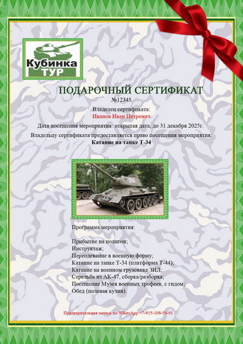 To order tank riding, make a prepayment 5000 rub/person.