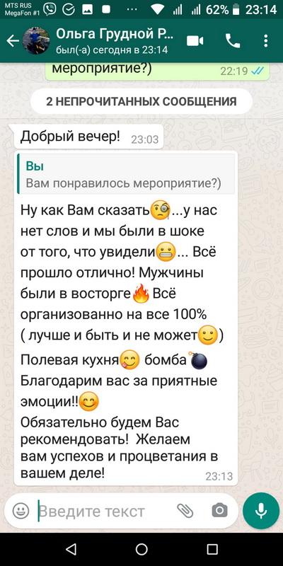Для записи, напишите нам интересующую дату, сколько вы хотите добавить участников и какие дополнительные услуги вас интересуют.