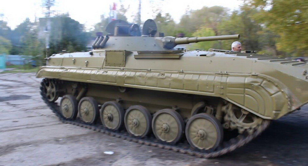 Machine gun shooting while riding a tank, 10 shots.