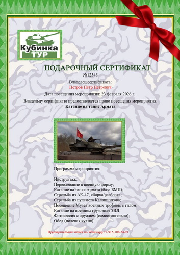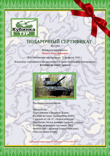 Скидка на подарочные сертификаты на катание на танке